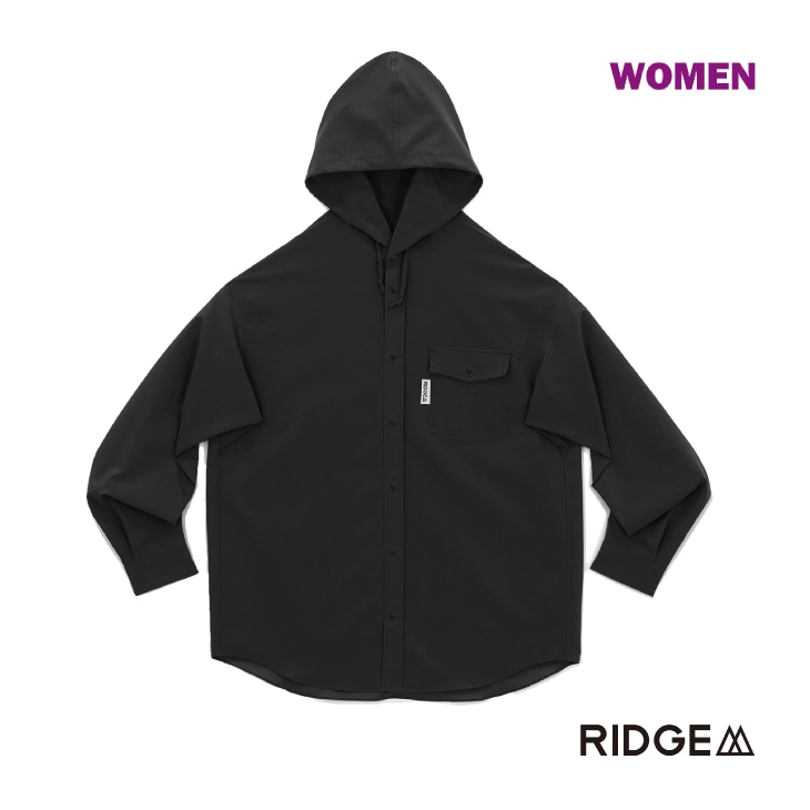 Women's Hooded Long Sleeve Shirt 2026 Solid Black フーデッド ロングスリーブ シャツ 2026 ソリッドブラック ウィメンズモデル 長袖シャツ