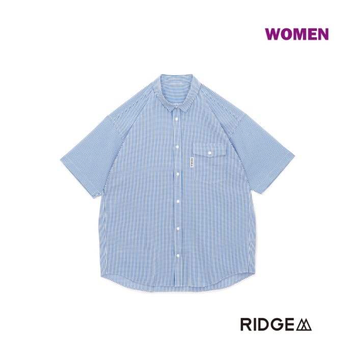 Basic Short Sleeve Shirt "Stripe" (Women) - Blue × White ベーシック ショートスリーブ シャツ "ストライプ" (ウィメンズ) - ブルー x ホワイト