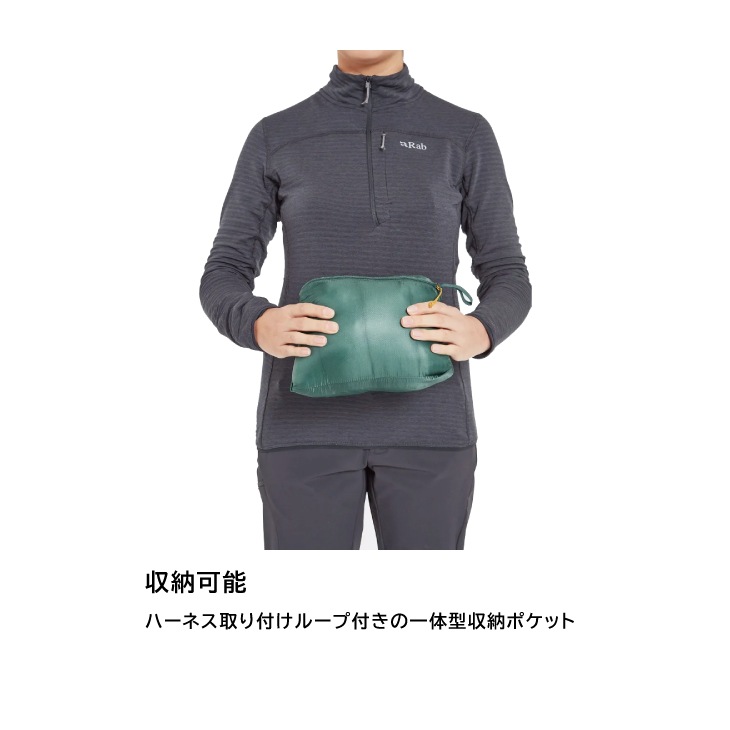 - ハーネス取り付けループ付きの一体型収納ポケット