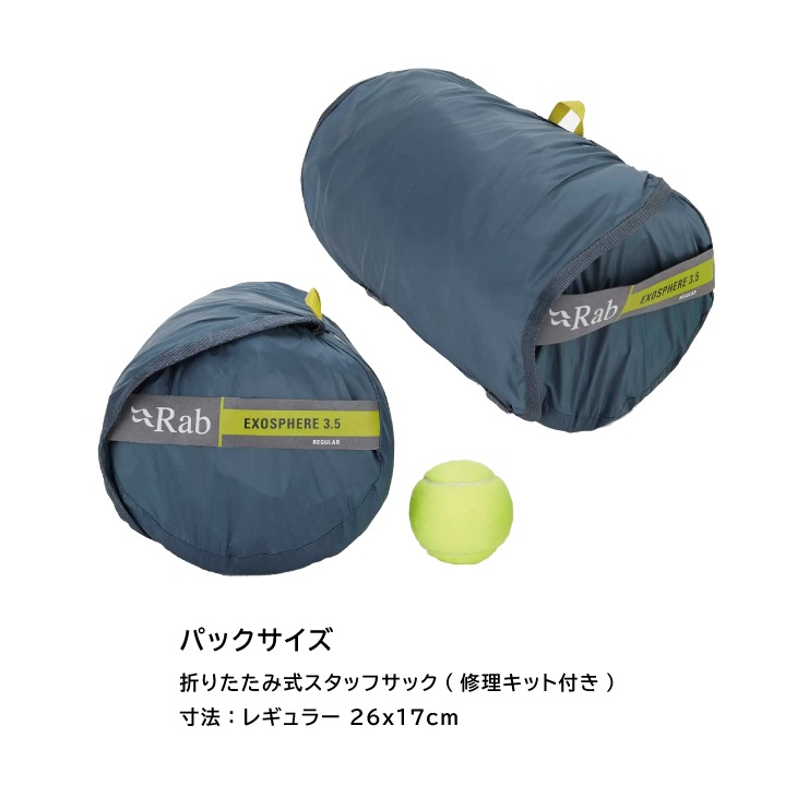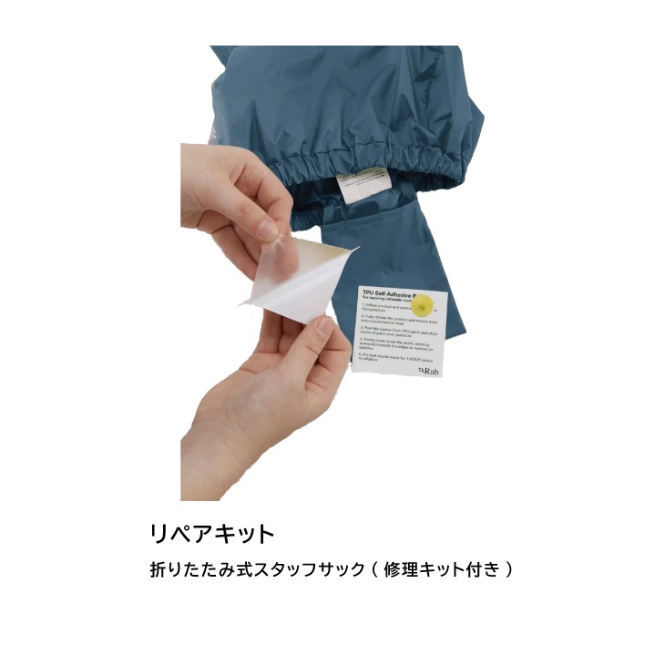- ロールアウェイ・スタッフサックとリペアキットを付属