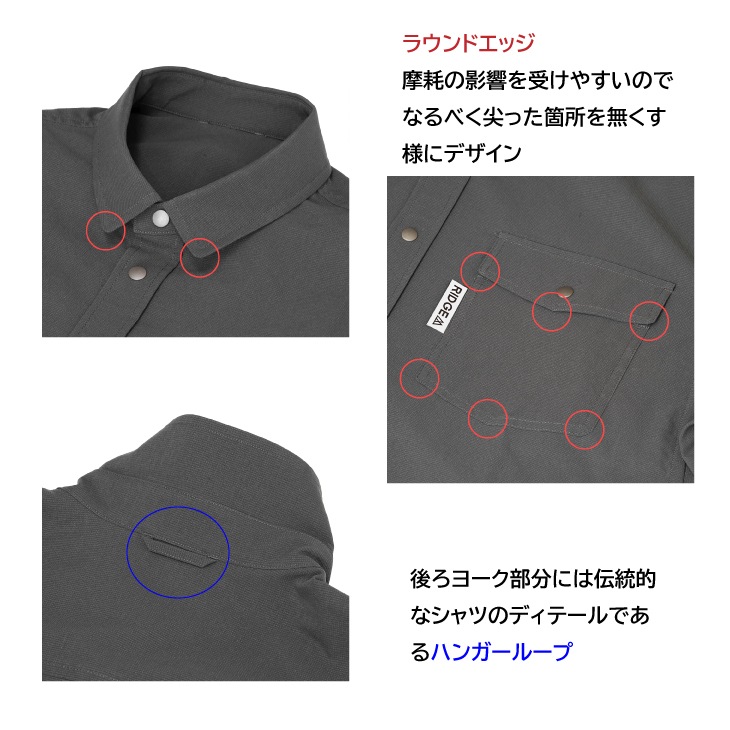 ・後ろヨーク部分に伝統的なシャツディテールであるハンガーループ