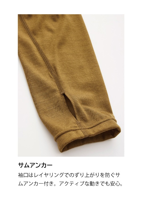 袖口はレイヤリングでのずり上がりを防ぐサムアンカー付き。アクティブな動きでも安心。