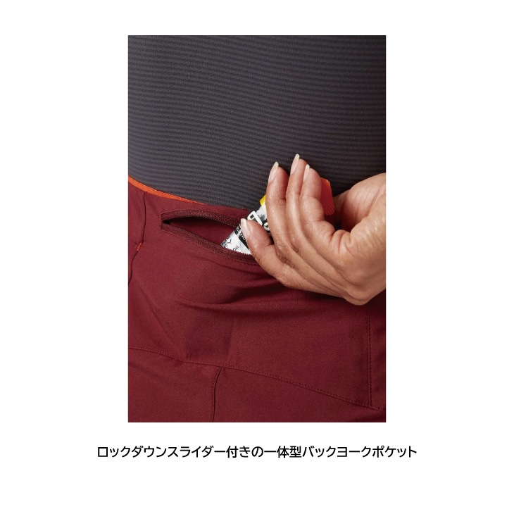 快適な深みのある3/4伸縮性ウエストバンドを備え、ロックダウンスライダー付きの一体型バックポケットがあります。