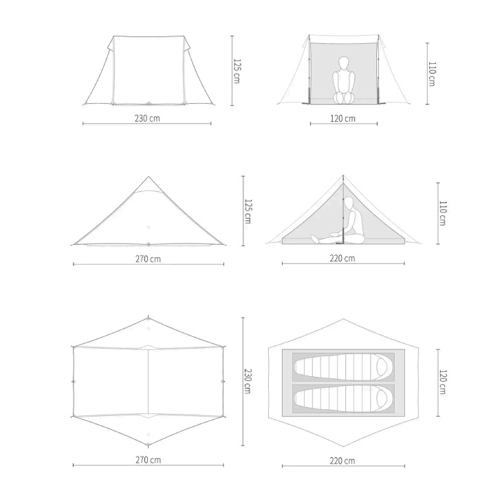| 設営時サイズ(外寸) | L:270cm x W:230cm x H:125cm |