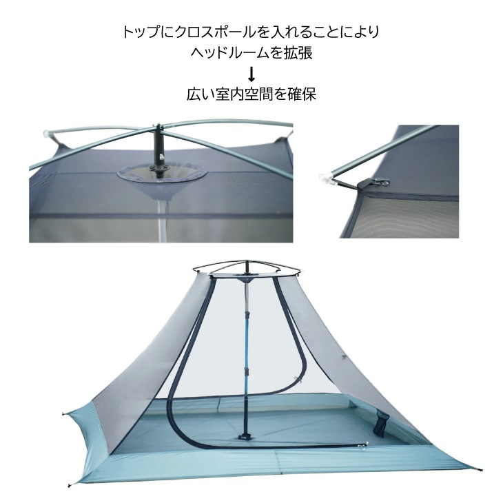 セット内容 テント本体、ポール、ペグ、スタッフサック、メッシュインナー単独設営用ポールパーツ