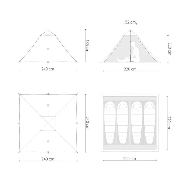 設営時サイズ (外寸) L:240cm x W:240cm x H:135cm