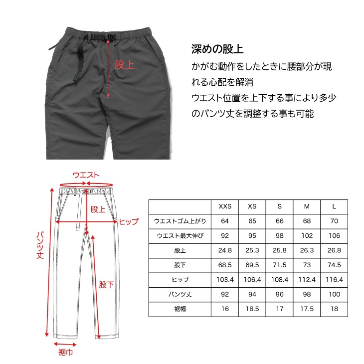 | パンツ丈 | 92 | 94 | 96 | 98 | 100 |
