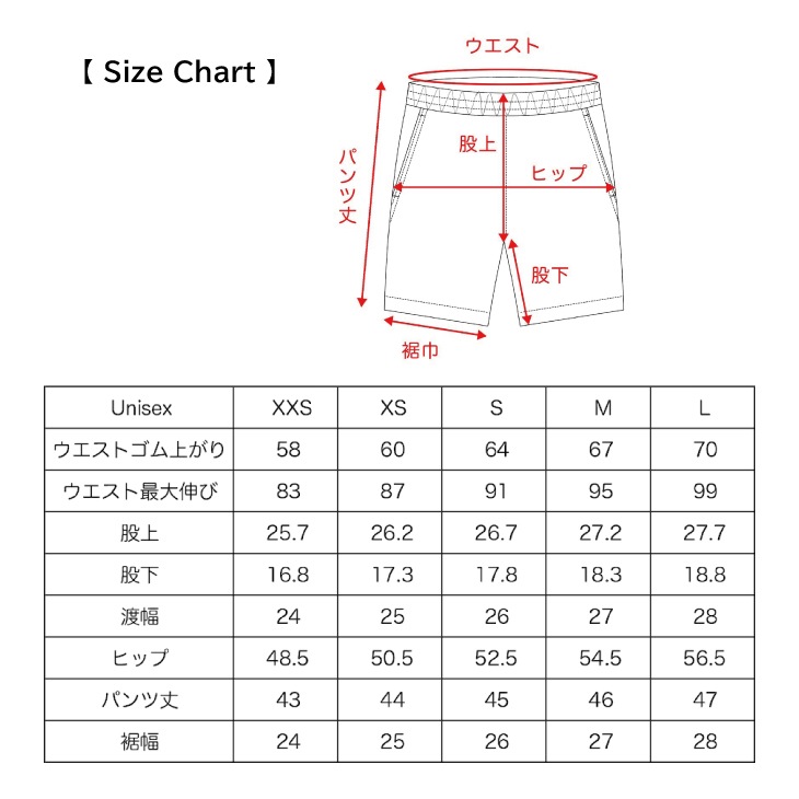- サイズ :XXS、XS、S、M、L(Unisex)