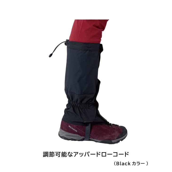 調節可能な足元ストラップ、伸縮性のある足首、面ファスナー付きのフロントクロージャー、調節可能なアッパードローコードを使用して、石、汚れ、水がブーツやパンツの脚に侵入するのを防ぎます。