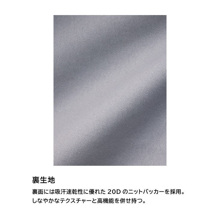 裏面には吸汗速乾性に優れた20デニールのニットバッカーを採用。しなやかなテクスチャーと高機能を併せ持つ。