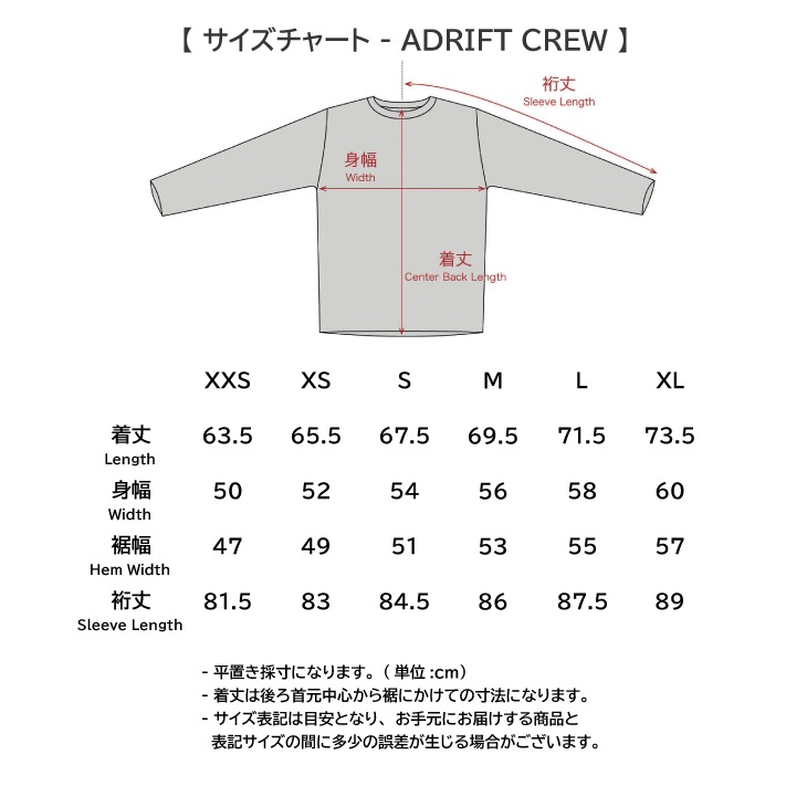 | 採寸データ(cm) | XXS | XS | S | M | L | XL |