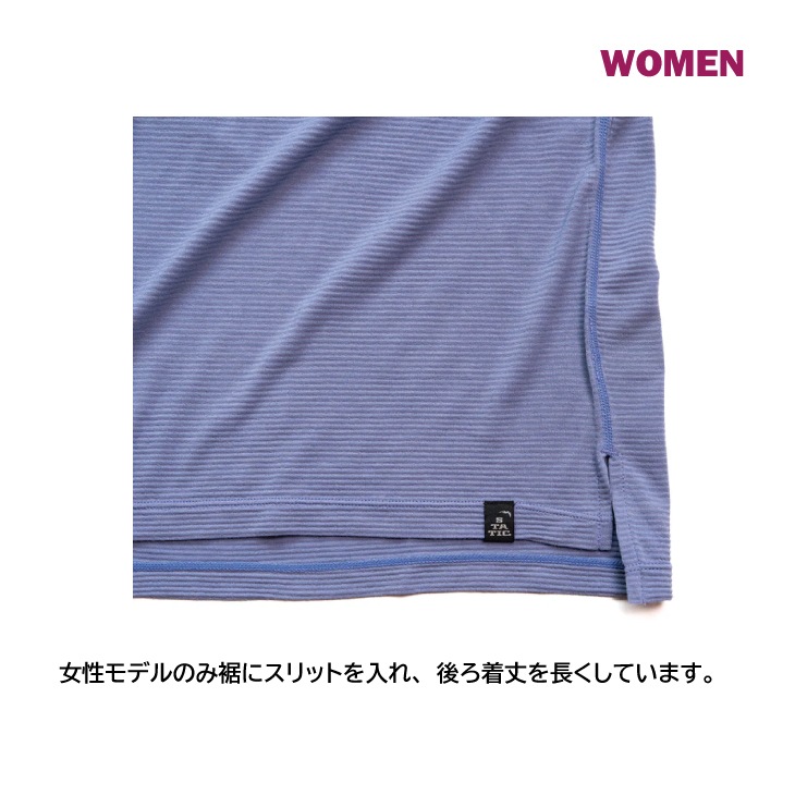 ・女性モデルのみ裾にスリットを入れ、後ろ着丈を長くしています