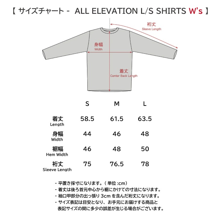 All Elevation L/S SHIRTS W's Sugilite オールエレベーション ロングスリーブシャツ スギライト ウィメンズモデル S~Lサイズ