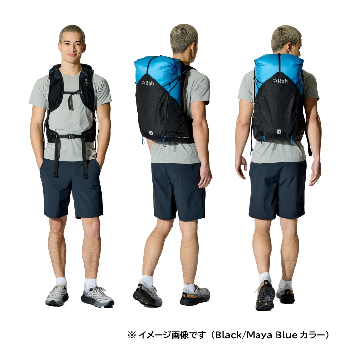 完全防水で通気性も非常に高く、軽量化を徹底しながら空気の流れを確保した30Lパックです。