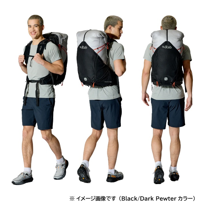 完全防水で通気性も非常に高く、軽量化を徹底しながら空気の流れを確保した40Lパックです。