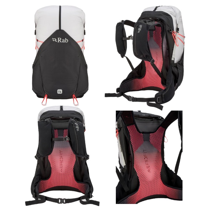 完全防水で通気性も非常に高く、軽量化を徹底しながら空気の流れを確保した38Lパックです。